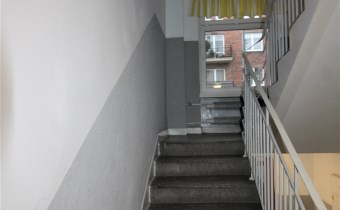 Mieszkanie usytuowane jest na 4-piętrze w niskim bloku wybudowanym z cegły w latach 60-tych XX wieku.