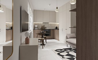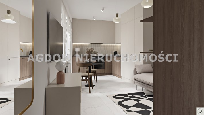 Kawalerka z klimatyzacją o powierzchni 27m kw, usytuowana na 6-piętrze, składa się z salonu z aneksem kuchennym, łazienki z wc, korytarza z miejscem na szafę.