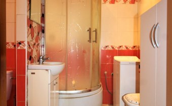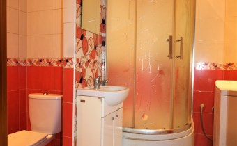 -funkcjonalnej łazienki z kabiną prysznicową, umywalką, toaletą;