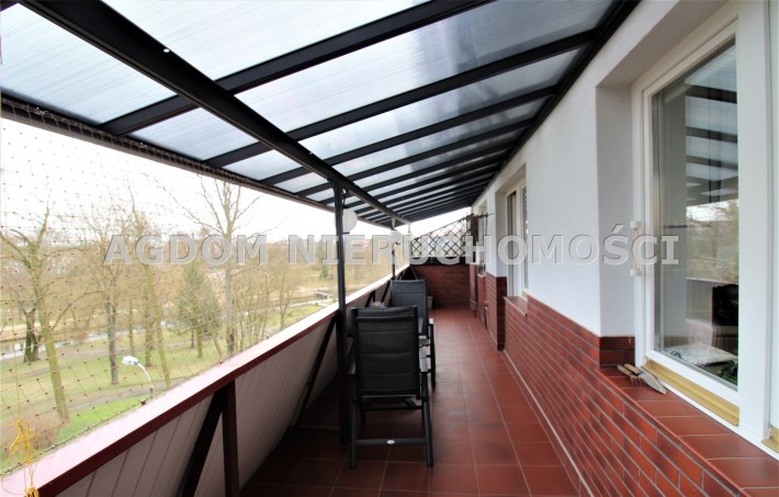 Lokal o powierzchni 90m kw z tarasem 20 m kw, znajduje się na 2-piętrze w niskim bloku.